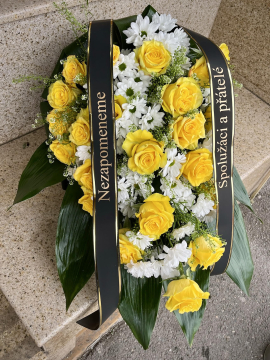 Vzkaz na smuteční stuhu uvedeme dle vašeho přání. Barva stuhy je volitelná, zvolit můžete černou, bílou, stříbrnou, zlatou a fialovou.