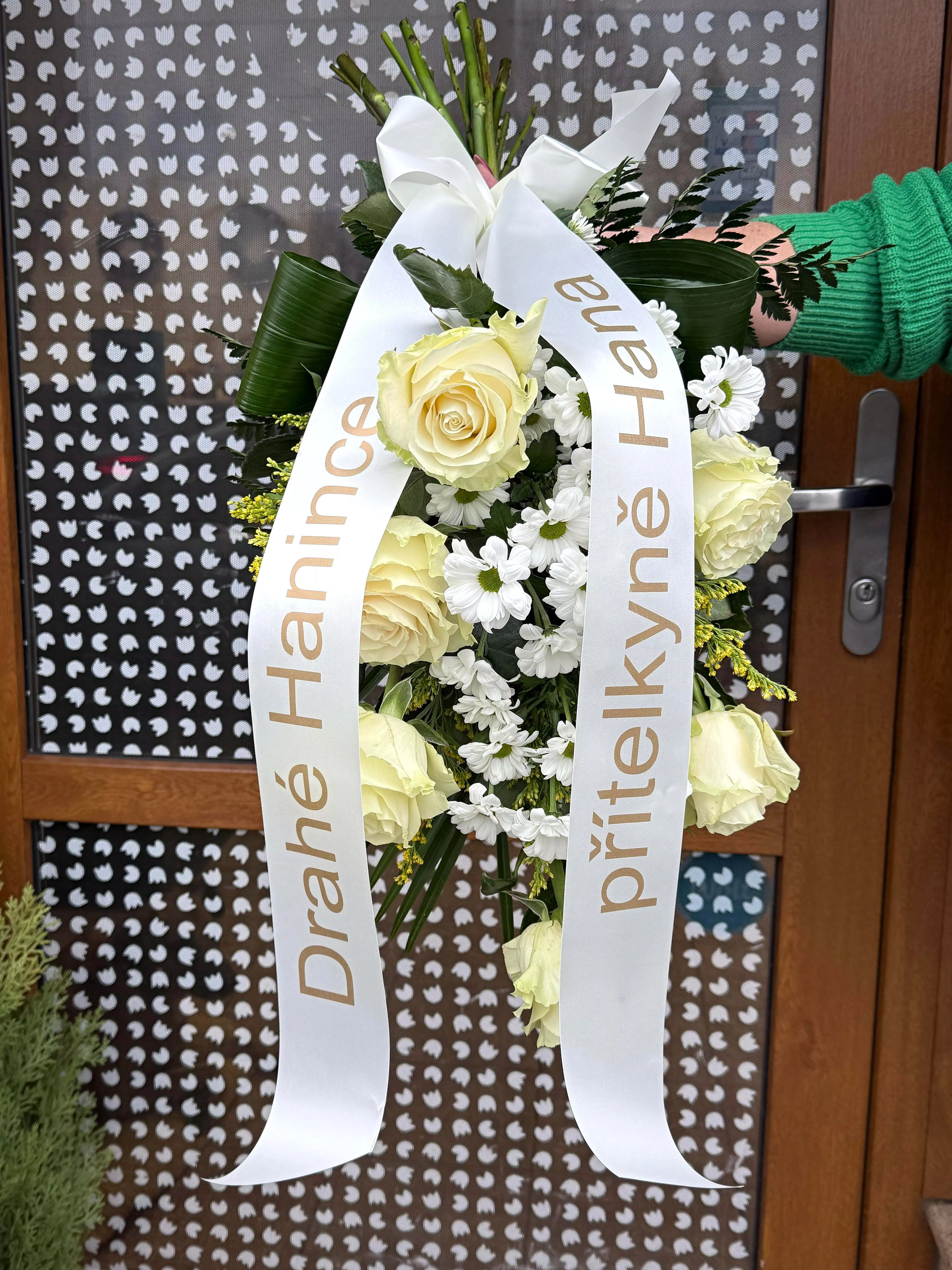Na přání vám ke smuteční kytici vyhotovíme stuhu s vlastním textem k poslednímu rozloučení.