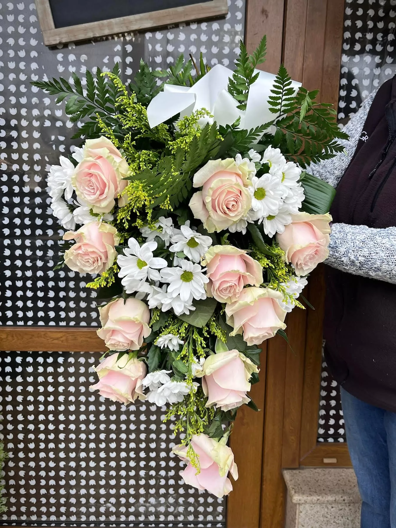 Napište nám Váš příspěvek nebo otázku k Smuteční kytice Klasik, růžové růže a chryzantémy.