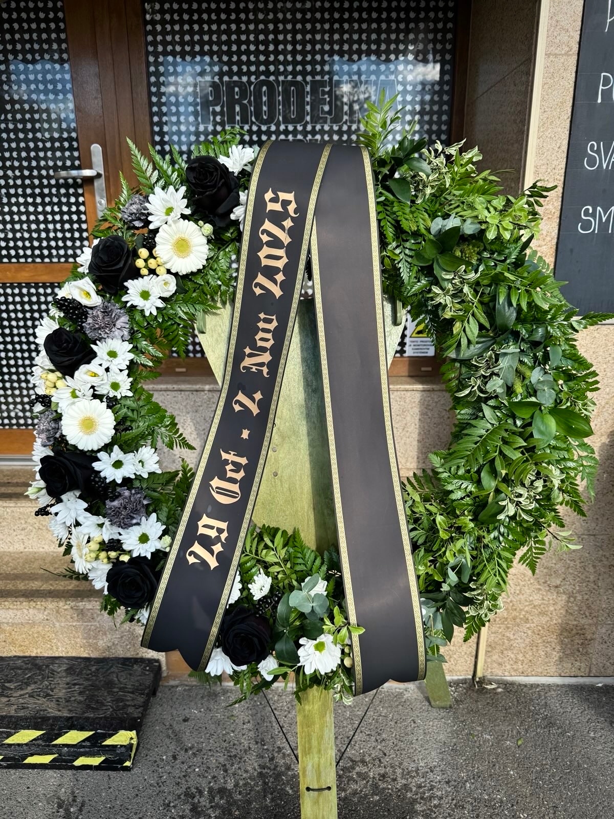 Tento typ smutečního věnce objednávejte prosím nejlépe dva dny předem. Jeho příprava není na počkání.