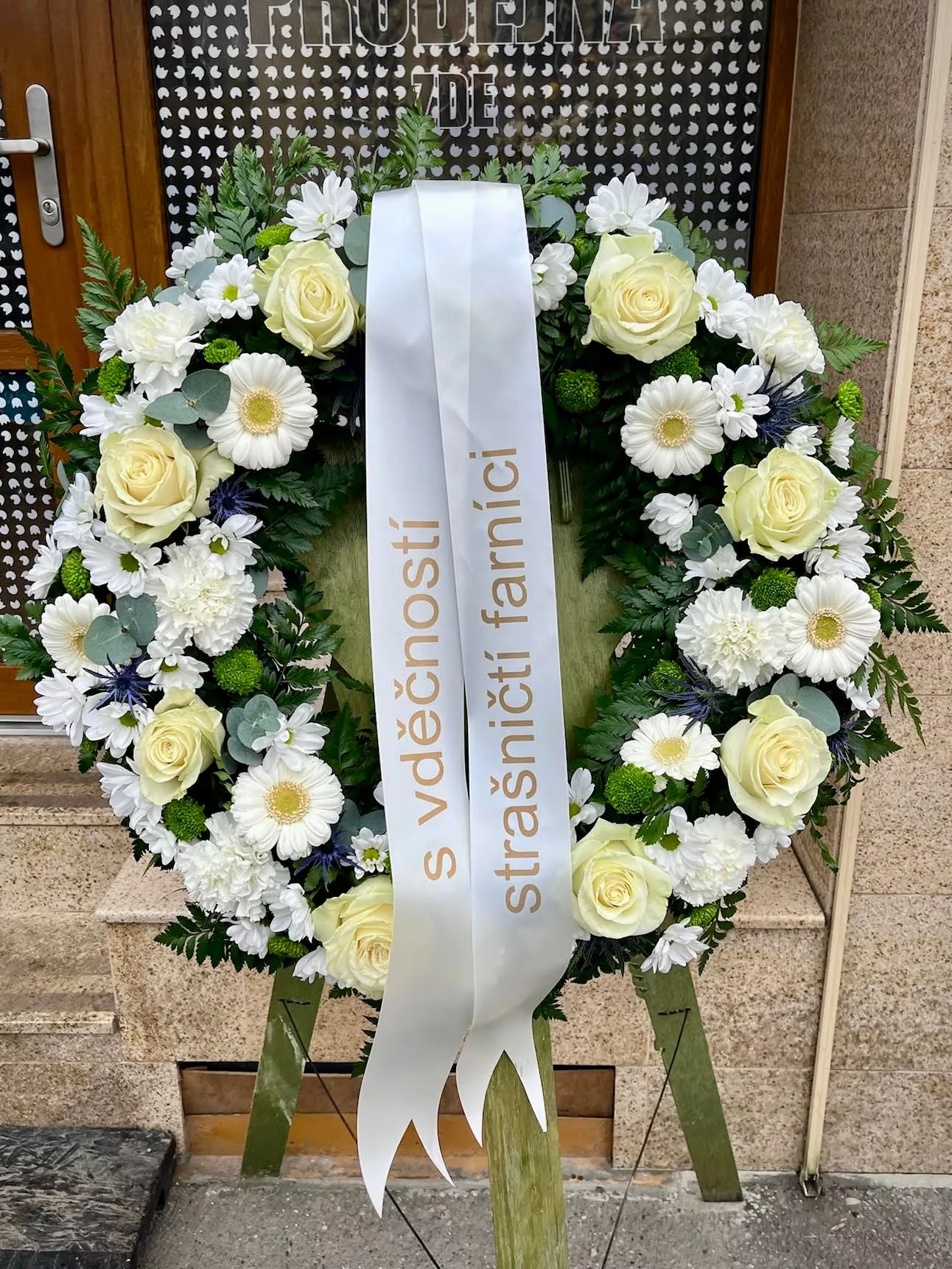 ✅ Doručení přímo do síně: Věnec doručíme s předstihem přímo personálu síně k vystavení na stojánek u rakve.