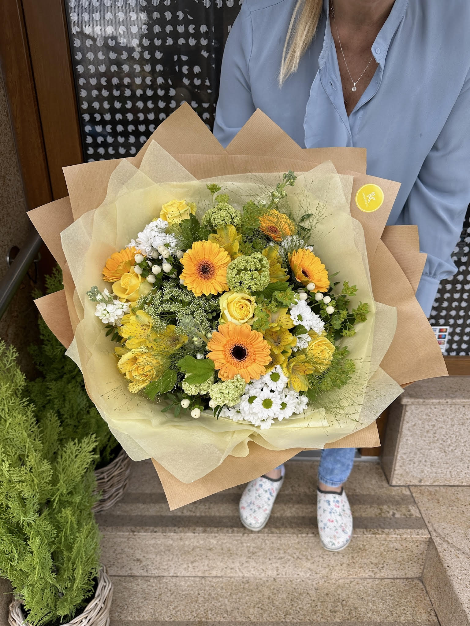 Květinová galerie slouží jako inspirace. Nejsme schopni garantovat 100% stejné složení. Skladba kytic je ovlivněna sezónní dostupností čerstvých květin, které vám do každé kytice dáváme. Můžeme se jim však přiblížit. Ukazujeme kytice, které od nás odchází. Rychle vyfotit kytici se vždy nepovede, platí to, že v reálu jsou ještě hezčí, za to ručíme.